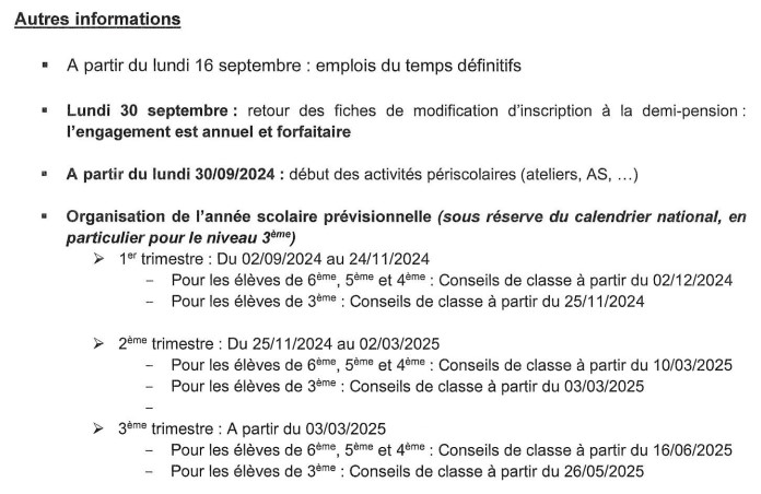 Informations de Rentrée : attention, nouvelles dates pour les réunions