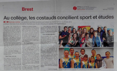 Tous les 3è section natation obtiennent leur Diplôme National du Brevet avec mention. Environ 50% d’entre eux, selon les années, poursuivent leurs études désormais au lycée Lapérouse-Kerichen de Brest (2022) en intégrant le Groupe Espoir ou le Centre d’Accession et de Formation (CAF) .