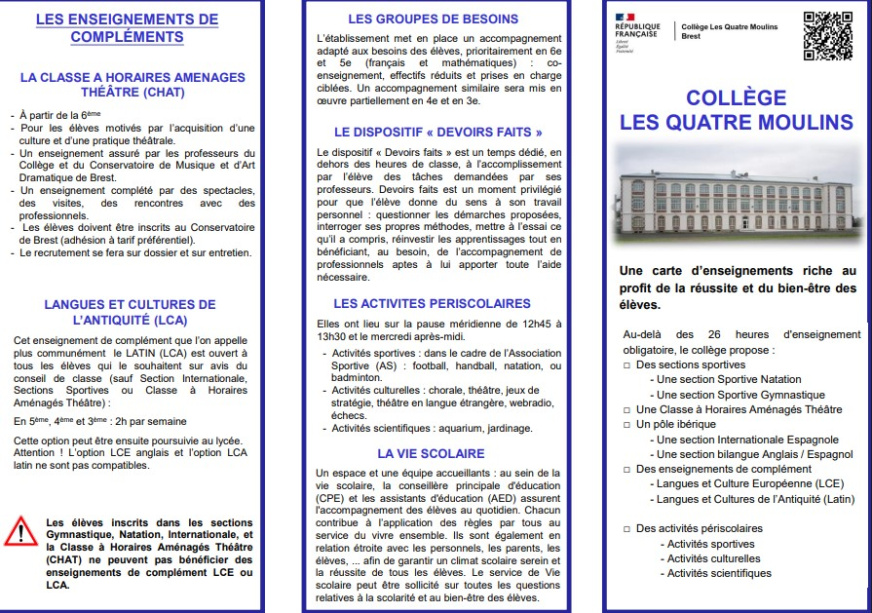 Les portes ouvertes du Collège Les Quatre Moulins auront lieu le vendredi 23 janvier 2026, de 17h à 20h.