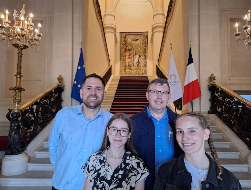 Mercredi 22 mai, Ariane BUCAS et Angèle LEROUX ont été reçues au Ministère de l’Europe et des Affaires Etrangères en compagnie de leurs professeurs Jacques-Alain AIMÉ et Sébastien BUREL.