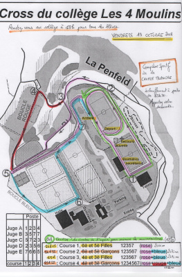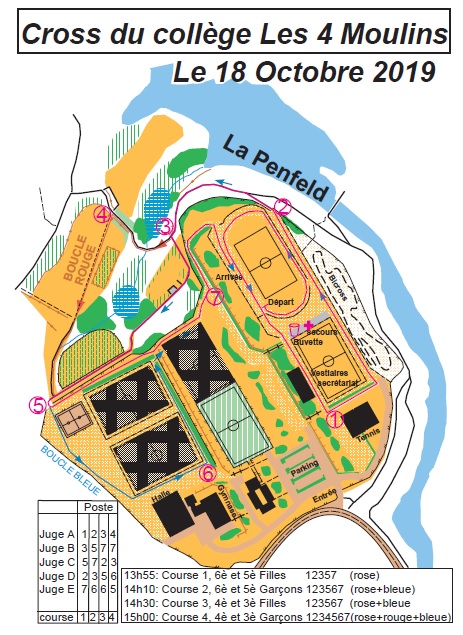Horaires des courses : 13h50 : Course « Virades de l’espoir » pour vaincre la mucoviscidose Course n° 1 : 14h - 6è/5è et Ulis Filles Course n° 2 : 14h25 - 6è/5è et Ulis Garçons Course n° 3 : 14h 50 - 4è/3è et Ulis Filles Course n° 4 : 15h15 - 4è/3è et Ulis Garçons